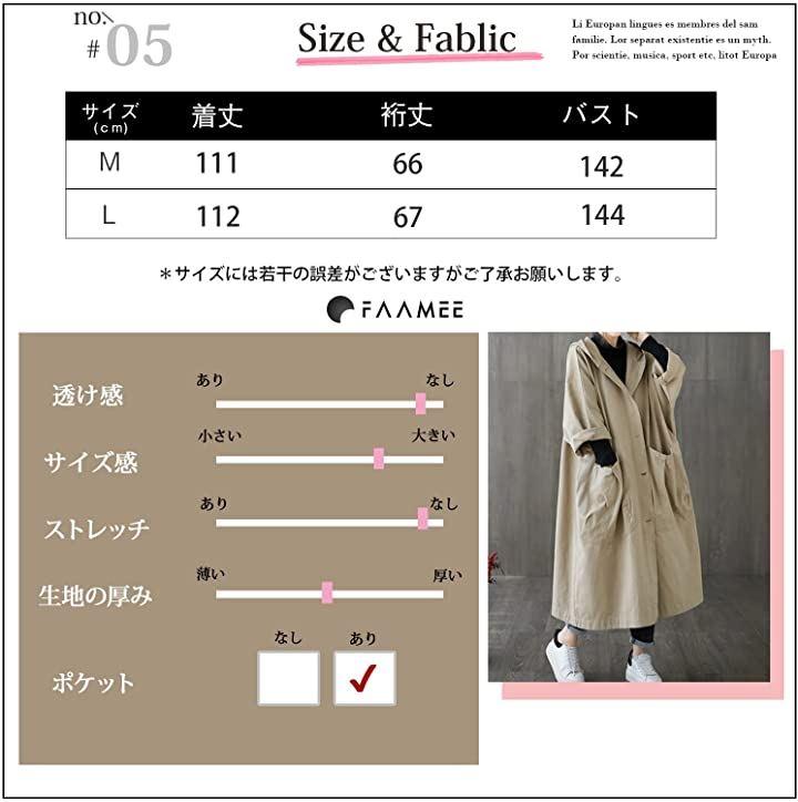 サイズはMとLラインシルエットが着痩せ効果を発揮してくれるので、気になる体型カバーもしっかり叶えます・さらにフード付きでスポーティーな雰囲気を演出してくれ、小顔効果も・カジュアルスタイルでデイリー使いにぴったり。