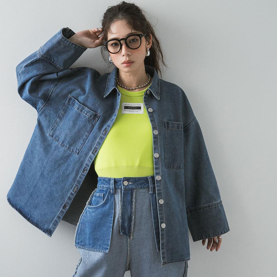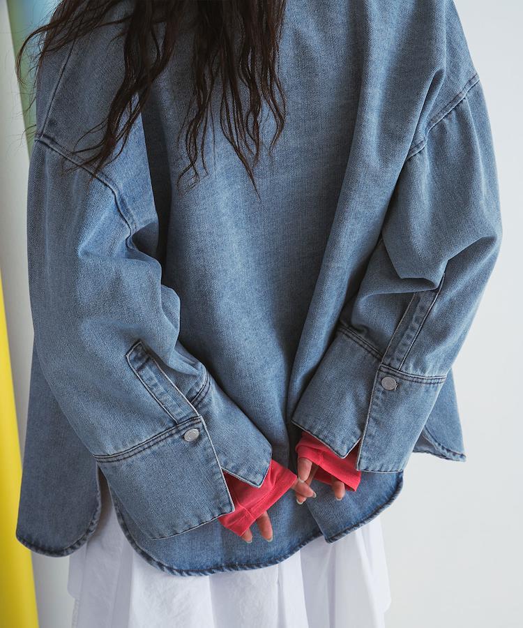 リラクシーなオーバーサイズシャツシルエットのデニムジャケット。