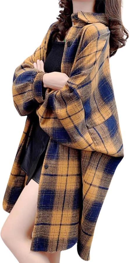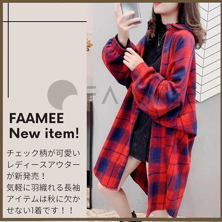 Oversized, thick shirt, outerwear, long sleeves, autumn, women's, free size, check, long, loose, stylish, outerwear