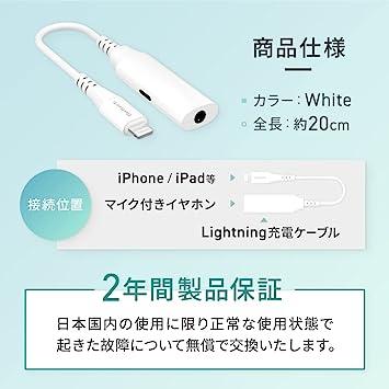 通常1-5営業日で発送:オウルテック 充電用ライトニングポート付き ライトニング to 3.5mmミニジャック マイク付イヤホン 変換ケーブル apple認証 iPhone/iPad/iPod対応 20cm ホワイト OWL-CBLTF35LT02-WH