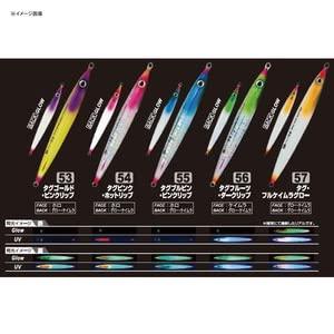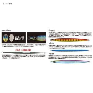 ただ頑強なだけじゃない。大型青物迎撃ロング! このジグを表現するのに文章で書くと、長くなってしまいます。それはお話したいことが多すぎ、カタログでは言及できないからです。よってキーワードで羅列しておきます。さらに詳細はショア青物専用サイト「撃投サイト」を閲覧ねがいます。1変型防止のステンレス鋼板「タフボーン」内蔵です。ワイヤーではありません。2塗装は耐衝撃仕様です。磯にぶつかった箇所のみが凹むことを目指しています。3「スライド」→「浮遊」→「水平フォール」の移行がスムーズです。通常のジグよりも大型青物に見切られることなくバイトを得やすくなっています。4ジグのエッジに丸みを持たせ、フォール時のスライスを排除。フォールから着底までの迅速さはシリーズ最速です。150グラムなら激流帯ではプラス30グラムのフォール感覚です。5飛距離へのこだわりは撃投シリーズ15年の蓄積。飛行姿勢(=飛距離)はロングジグでは類を見ない感覚です。【FRONT】センターのキールが水圧を分け、レベルよりもタイトピッチなローリング水平フォールを見せます。意図的にエッジを殺してありますので、ジャーク後は不要な弧軌跡を描かずに