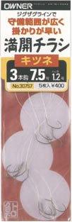 3本チラシのハリスをジグザグ状態に仕上げることにより掛かる範囲が広域なチラシ仕掛けが完成しました。チラシのハリがバランスよく配置されているので、川の流れの中で根掛かりしにくい状態でセットされます。また流れの中で、後方のハリが反転するように動くのも特徴です。ハリスの角度が変形した場合は手直しした方が釣果につながります。