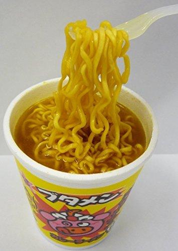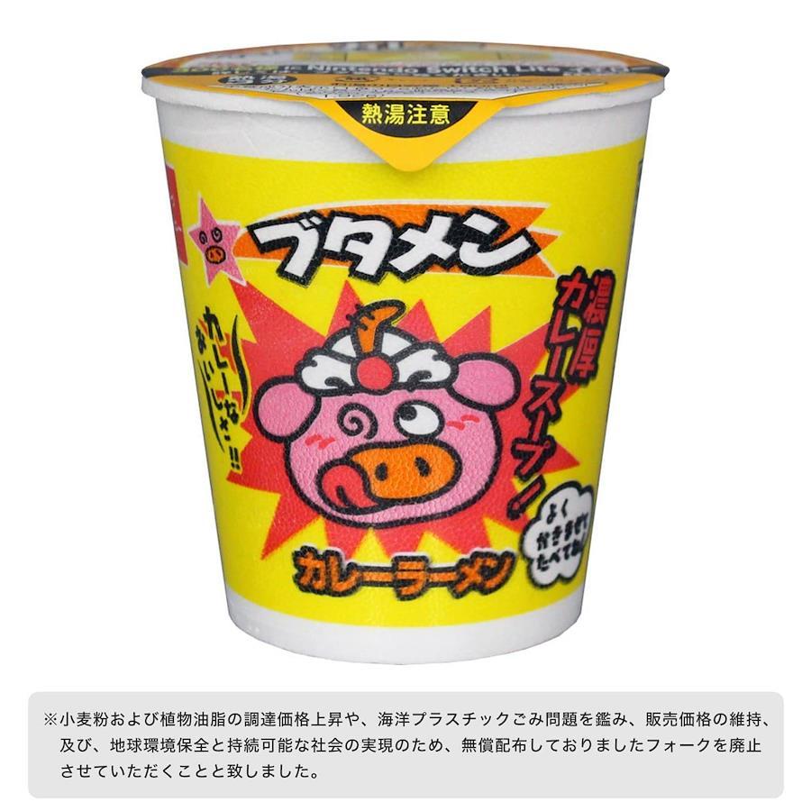 定番のミニカップラーメン、ブタメンカレー味。ブタメンは1993年に初めて発売されました。濃厚なカレースープをお楽しみください。少し小腹がすいたときに、おやつや夜食に、ランチのおともに、ぴったりなミニサイズ。お子様からおとなの方まで幅広く召し上がっていただけます。※2月下旬より、付属のフォークが廃止となります。ご了承ください。