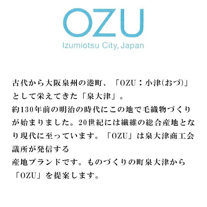 古代から大阪泉州の港町、「OZU:小津(おづ)」として栄えてきた「泉大津」。約130年前の明治の時代にこの地で毛織物づくりが始まりました。20世紀には繊維の総合産地となり現代に至っています。「OZU」は泉大津商工会議所が発信する産地ブランドです。ものづくりの町泉大津から「OZU」を提案します。