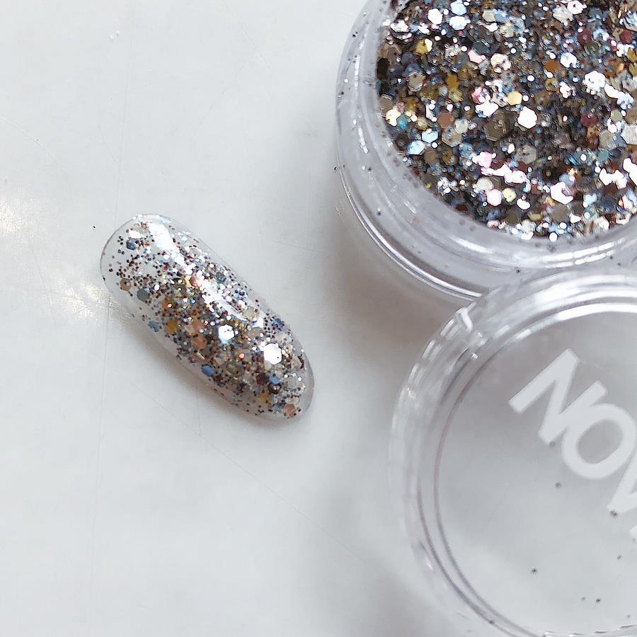 様々なサイズのホロやラメが入ったグリッターの為、均等に混ぜてからお好みの量をクリアジェルとミキシングしてご使用下さい。