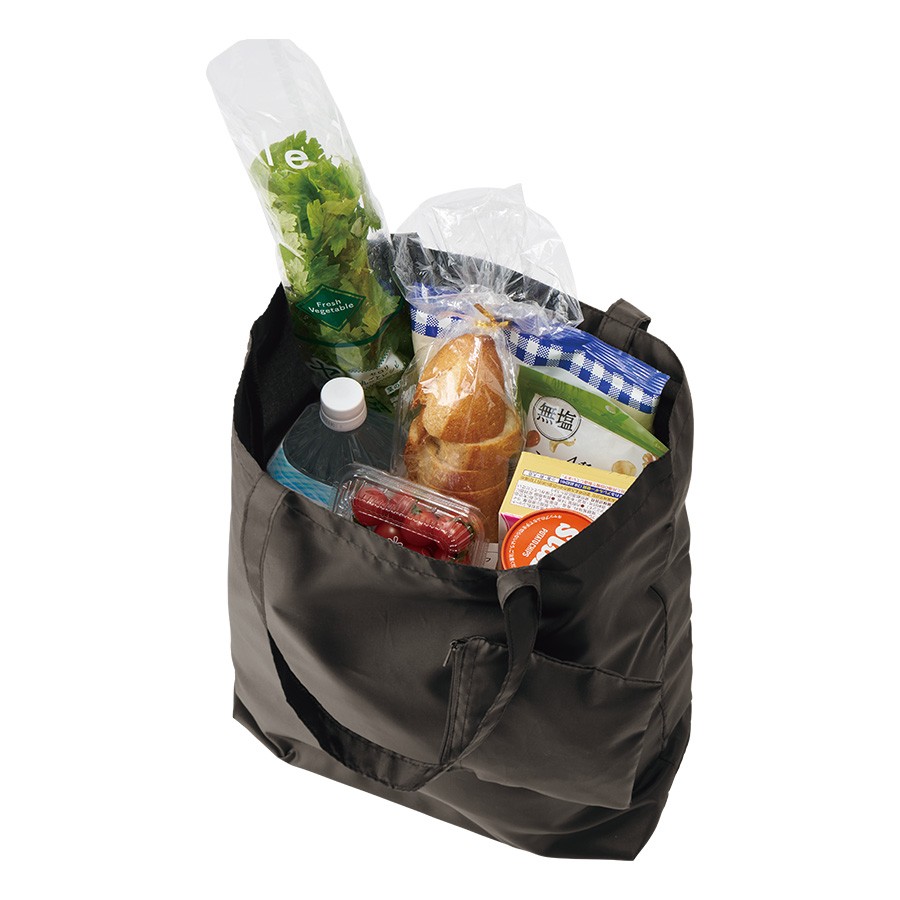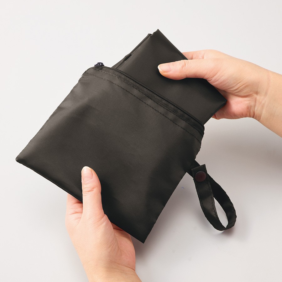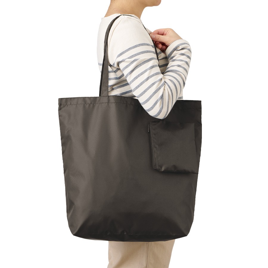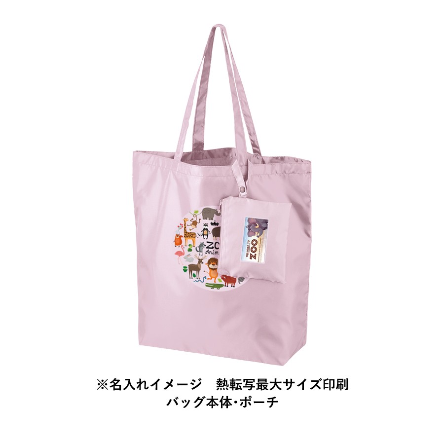 ポーチに入れてコンパクトに持ち歩ける便利なポケッタブルトートバッグです。独自の厚さでPUコーティングを施しているため、しなやか且つ耐久性のある生地に仕上がっています。付属ポーチはホック付きストラップでトート本体に下げることのできる仕様なので、本体はもちろん、ポーチに名入れをすれば訴求力も抜群です。普段はご自身のバッグのハンドルに吊るして持ち歩くことができる優れものです。M・Lの2サイズ展開で、Lサイズは2Lペットボトルを縦に入れても余裕のあるサイズ感で、週末のお買い物など、たくさん買うときにも大活躍なアイテムです。またフルカラー印刷対応で、お店のロゴやブランド名、キャラクターなどを再現できノベルティや購入特典、オープン記念など様々な業界や案件でご提案いただけます。