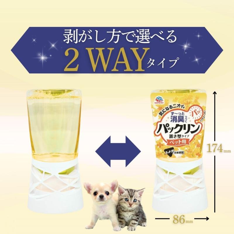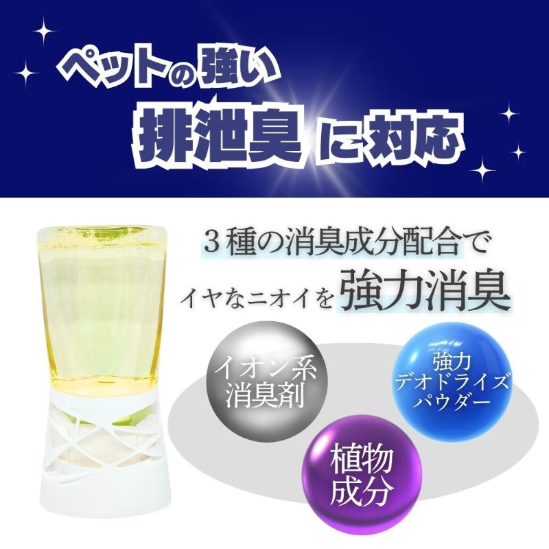 ・ペットのトイレ、ケージ近くに置くだけでオシッコ臭をマスキングし、良い香りが続く。・「ボトルが上」で上から下に液が落ちるから、最後の1滴まで香りがしっかり続いてずーっと消臭。・金木犀の香り。