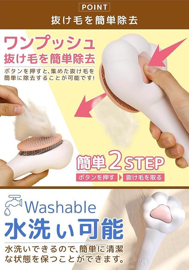 ブラッシング後は、ボタンを押すだけでたまった毛が簡単に除去できる便利設計。