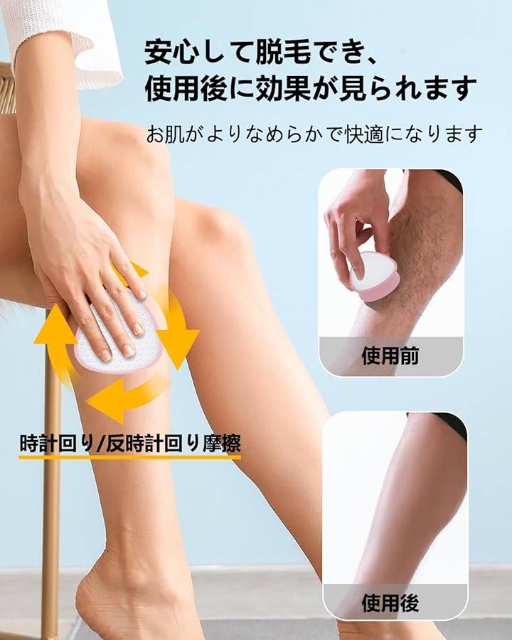 皮膚を円周運動するように軽く拭き取って毛髪を除去するだけで、滑らかで毛髪のない効果が得られます。