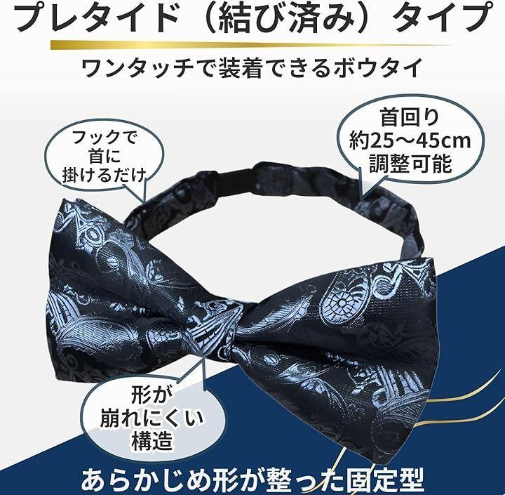 〇サイズ>蝶ネクタイ:約 横12cm x 縦6cm(バタフライ型ボウタイ)、首回り調整:約25~45cm(アジャスター式ストラップ)。