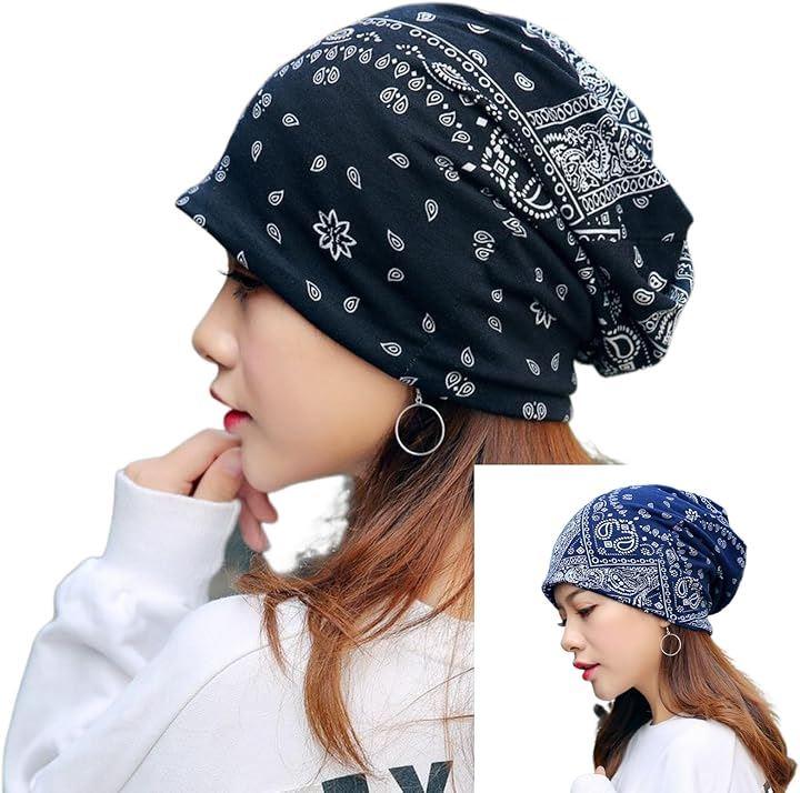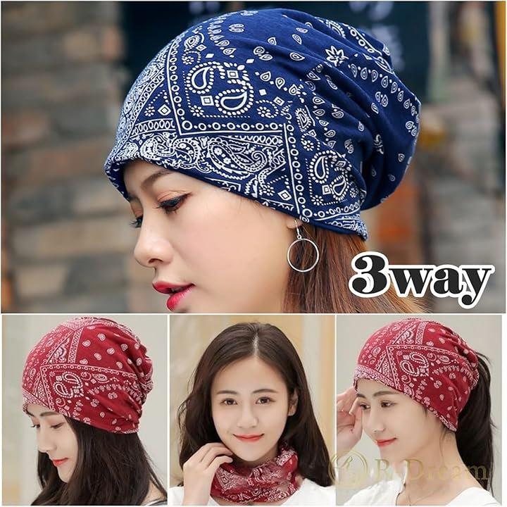 3WAYで使える、ペイズリー柄のレディースヘアキャップセットです。