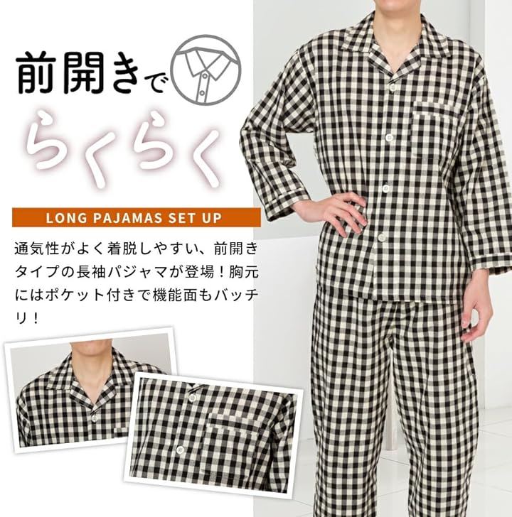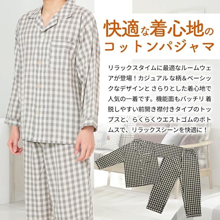 綿100%の素材は、一年中快適な着心地を保証し、着脱のしやすさや便利なポケット付きは、日常生活を豊かにする細やかな配慮が施されています。