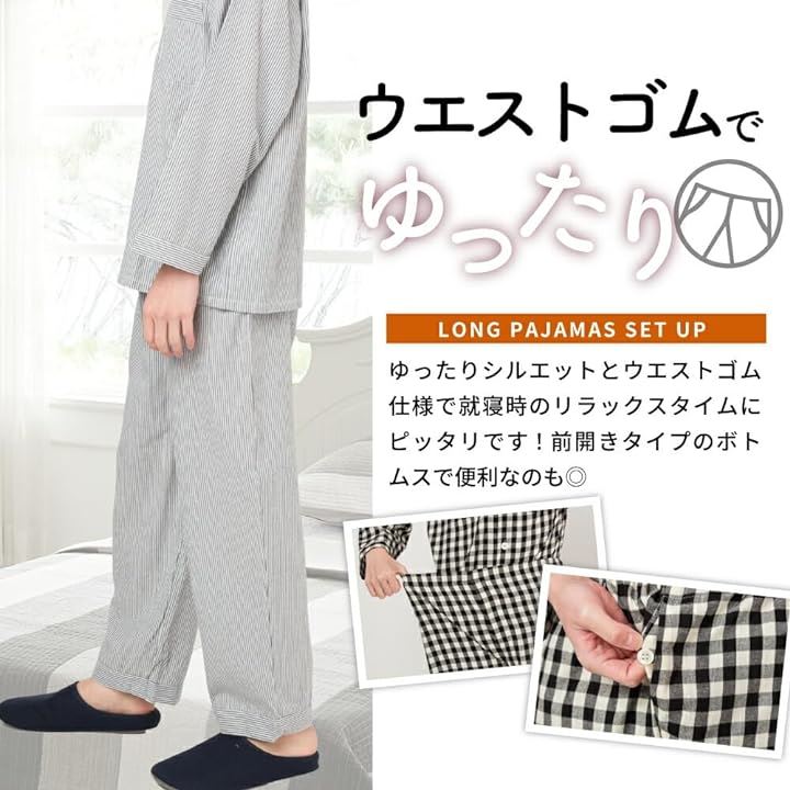 綿100%の素材は、一年中快適な着心地を保証し、着脱のしやすさや便利なポケット付きは、日常生活を豊かにする細やかな配慮が施されています。