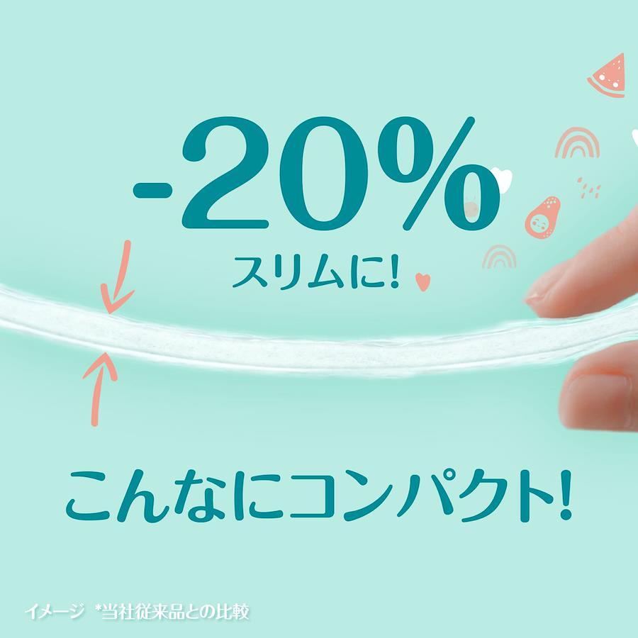 *'肌へのいちばん' 以外の当社製品比 パンパースの超吸収スリムパンツは、超コンパクトだからおでかけにグッド! コンパクトの秘密はパンパース史上初 -20%スリム吸収体*。だからかさばらず持ち運びに便利 *当社従来品との比較 うすいのに驚きの吸収力! たっぷりおしっこを吸収してももこもこしにくく、動きやすい!服を着ていてもすっきりスリムで快適 独自のフィット機能の360°モレガードで元気に動いても、モレ防止 パンパース 肌いちシリーズだから最高級の素材*で作られています * '肌へのいちばん'以外の当社製品比
