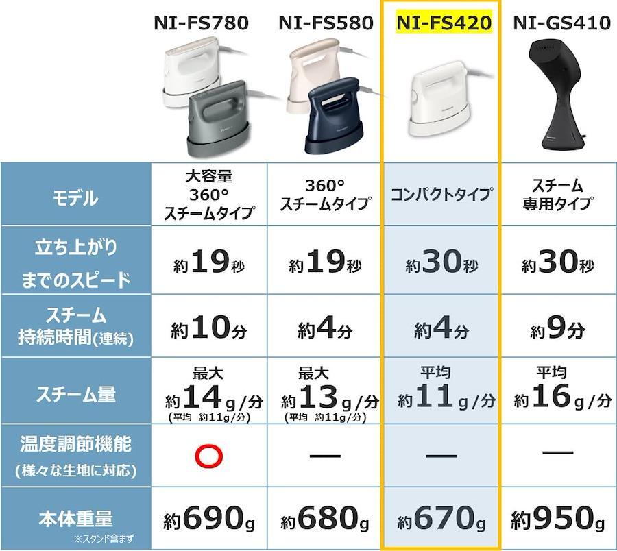 Panasonic clothing steamer, compact, white, NI-FS420-W