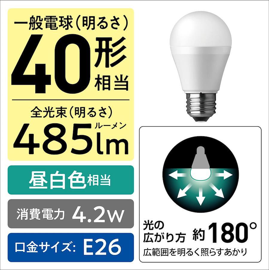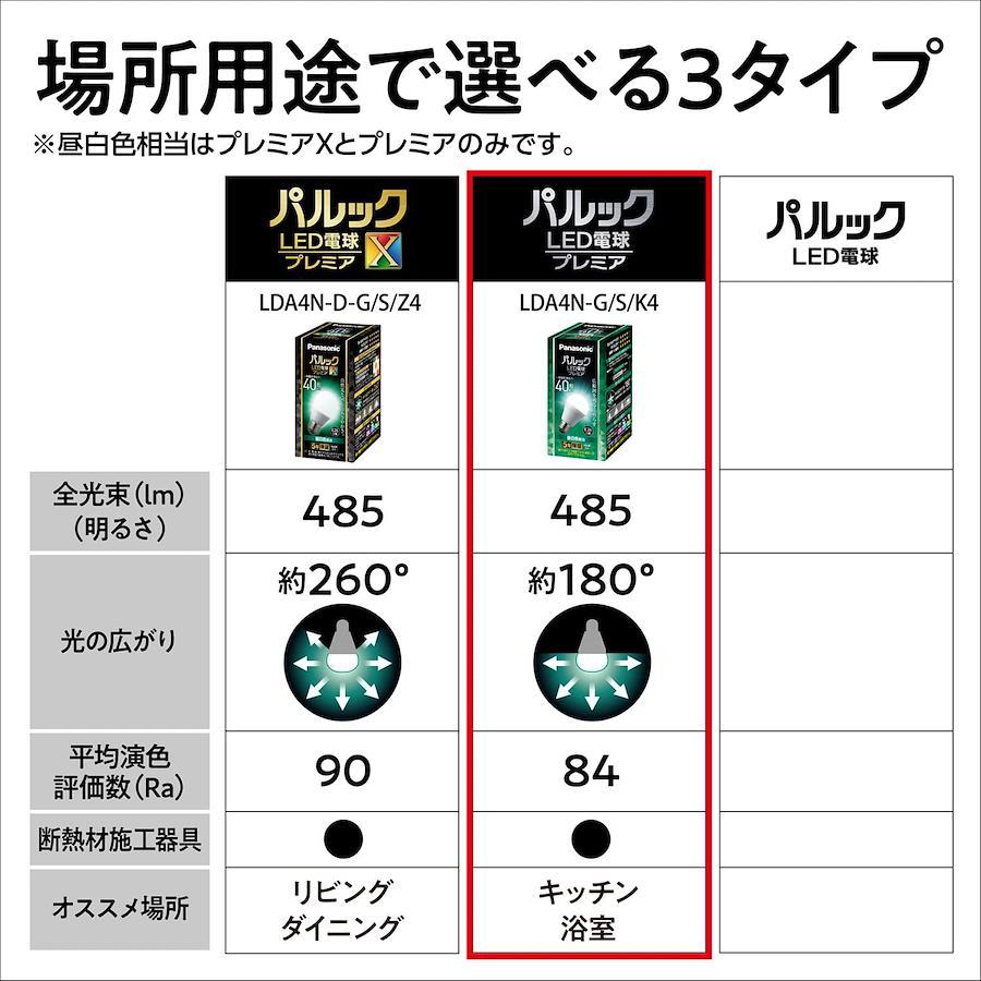 ・シリカ電球同サイズで「広範囲を明るく照らす」LED電球・屋外器具(※使用条件: 1.屋内配線 2.直射日光が当たらない 3.防湿・防雨型器具にて使用※)・断熱材施工器具(※建物の防音および省エネルギー対策のため、断熱材を天井に敷きつめる場合があり、器具内の温度が高温になる環境下でも施工可能な照明器具。(一社)日本照明工業会規格(JIL5002)に適合するものをいい、断熱材による器具加熱を考慮した温度設計がなされている。※)対応・全長98mm/外径55mm 「シリカ電球と同じサイズ」・昼白色を追加 「選べる3光色ラインアップ」