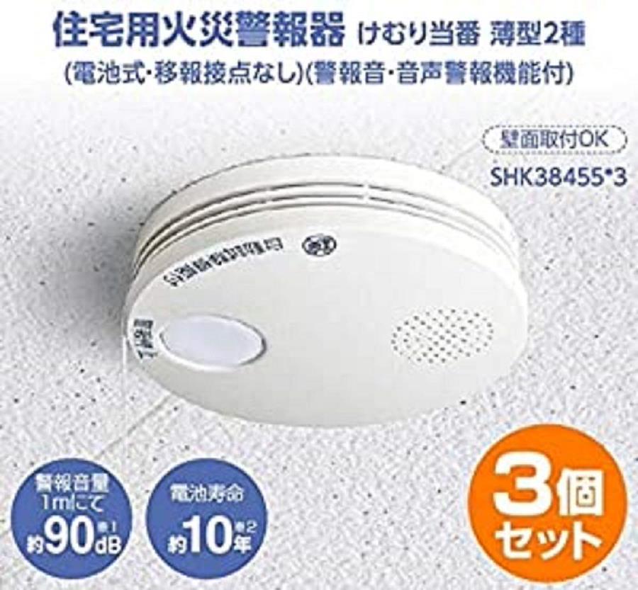 3営業日以内に発送≪新品未開封品≫:パナソニック(Panasonic) 住宅用火災警報器 けむり当番 薄型2種 お得な3個セット(電池式・移報接点なし)(警報音・音声警報機能付) SHK38455*3 クールホワイト