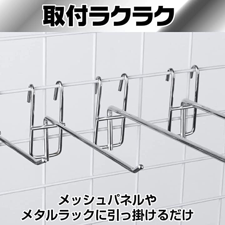 「取り付け簡単」取り付けはメッシュパネルやスチールラックなどに引っ掛けるだけ。面倒な工具等を使わず、お好きな場所に即設置できて移動も簡単です。