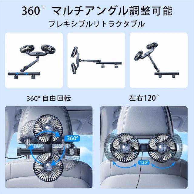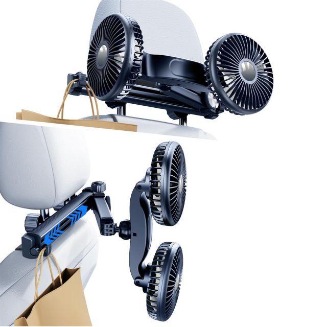 スタイル:T11F5208◆商品名:PANPHEN車用扇風機車後部座席扇風機ヘッドレストファン双頭車載ファン風量3段階調節360°回転デュアルファン低騒音5V/2AUSB延長配線折り畳みブラケット付き汎用車気温を下げて猛暑に対応