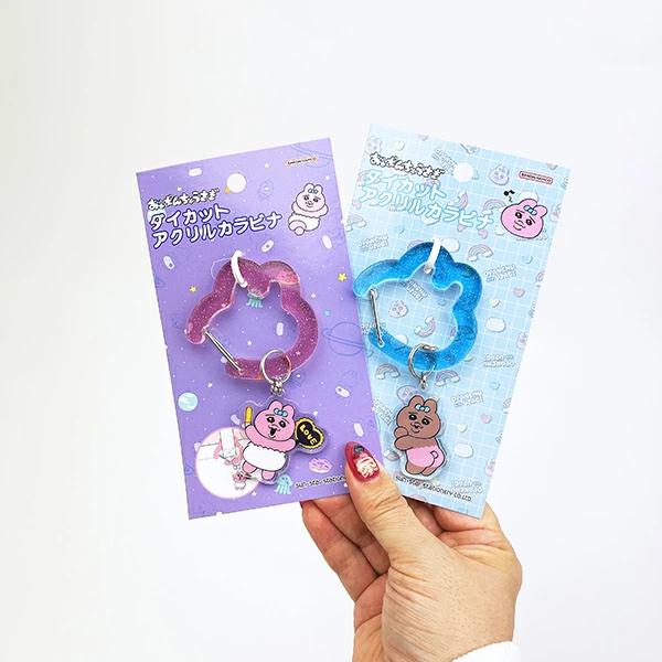 おぱんちゅうさぎのダイカットアクリルカラビナです。カラビナの形がうさぎ型になっていて、キラキラなのが可愛すぎます♪バッグなどに付ければ存在感バツグン◎アクリルの可愛いおぱんちゅうさぎにも注目です☆彡