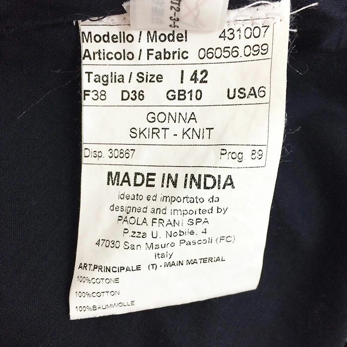 【管理番号】 007670【ブランド名】 パオラフラーニ PAOLA FRANI【アイテム】 スカート【サイズ】 38(平置き ウエスト:35.5cm総丈:約47.5cm)【色・柄】 黒【素材】 コットン100%【外観ランク】SAランク
