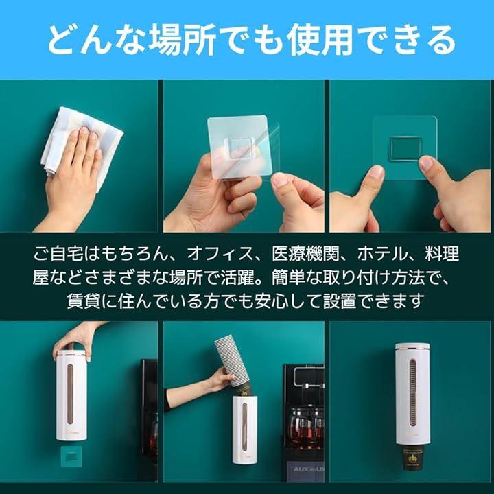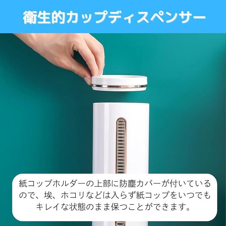 「衛生的カップディスペンサー」カップディスペンサーは紙コップを一個ずつ簡単に取り出すことができます。