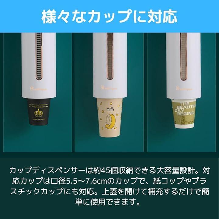 「様々なカップに対応」カップディスペンサーは約45個収納できる大容量設計。