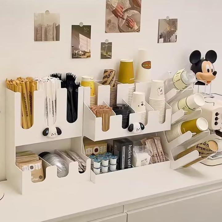 ストロー、コーヒーカプセル、ナ イフ/フォーク/スプーン、ティッシュなども収納でき、多機能で使いやすいです。