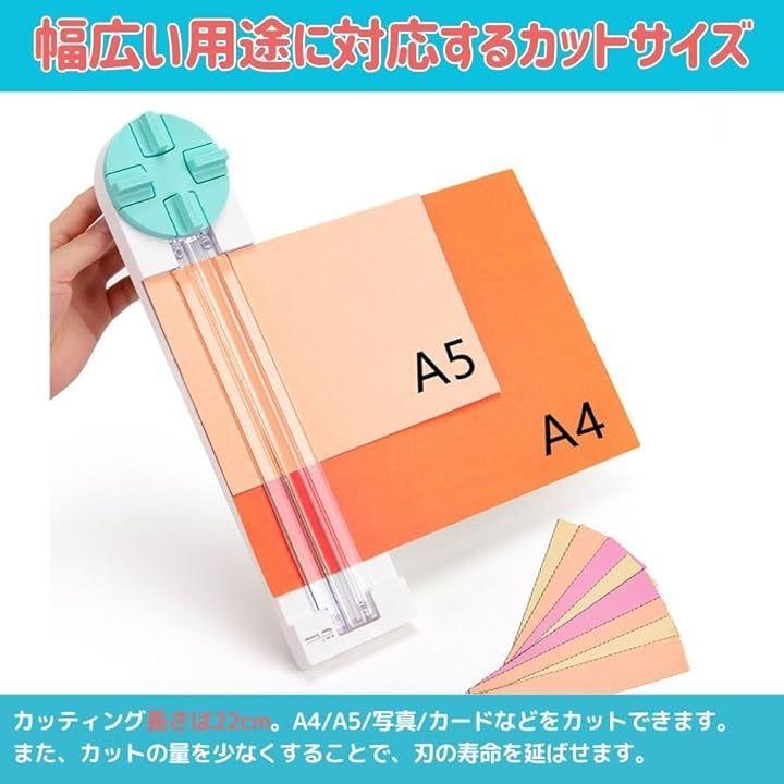 カッティングの長さは22cmで、A4やA5用紙、写真、カードなどをカットすることができます。