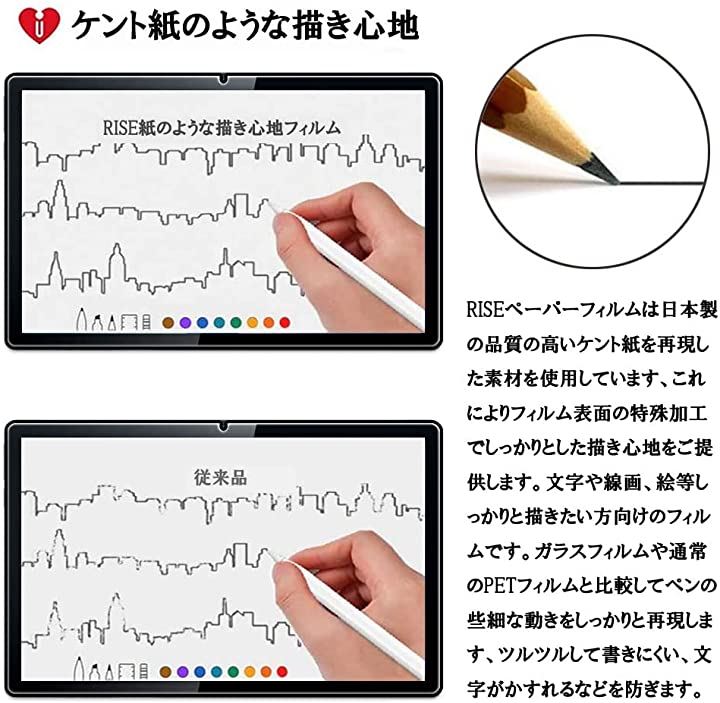 ・「製品仕様」ブルーライトを55%カットする素材を使用、紙のような書き心地のペーパー感覚の液晶保護フィルム。
