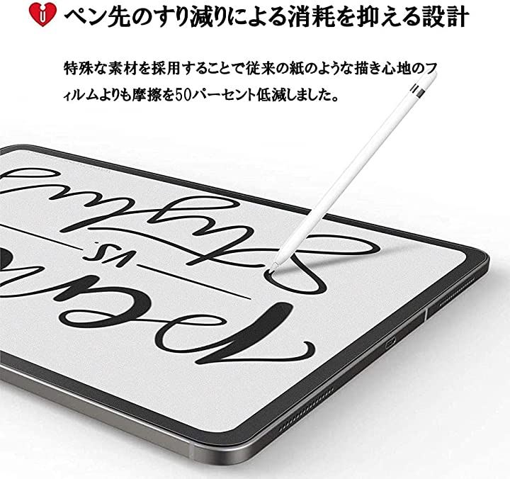 「ペン先の消耗を抑える設計」特殊な素材を採用することで従来の紙のような描き心地のフィルムよりも摩擦を50パーセント低減しました。