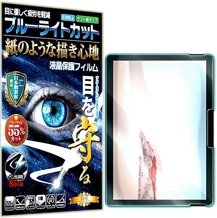 RISEブルーライトカット紙のような描き心地の保護フィルムはブルーライトを約55%カットするフィルム素材を使用しており、カット率で目の負担を軽減し、目を優しく守ります。
