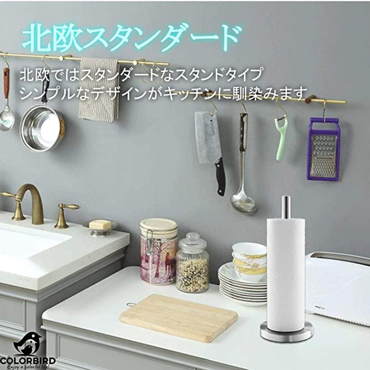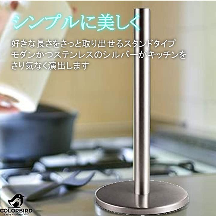 好きな長さをさっと取り出せるスタンドタイプモダンかつステンレスのシルバーがキッチンをさり気なく演出します