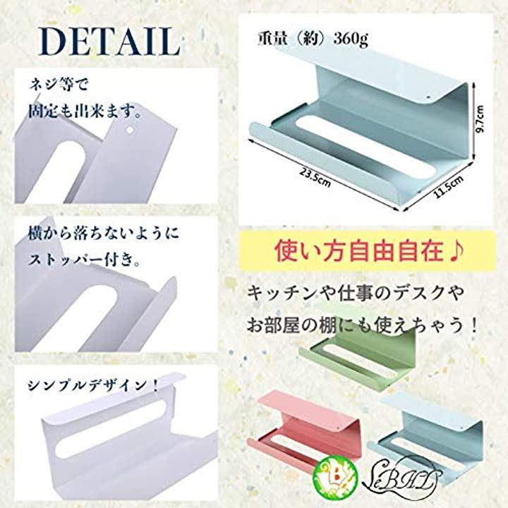 キッチンペーパーだけでなく、ビニール袋、ティッシュペーパー、台ふきんなどを収納でき、片手でラクラク取り出せちゃいます。