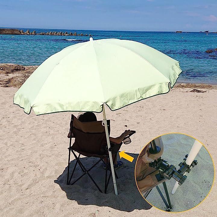 パラソル以外にもロッド、支柱、ポールなど丸いものを固定でき、釣り キャンプ BBQなどアウトドアの様々なシーンで活躍します。