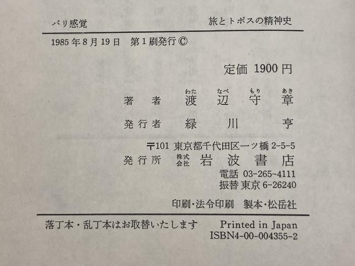 商品名:パリ感覚: 都市を読む (旅とトポスの精神史) 岩波書店 渡辺 守章