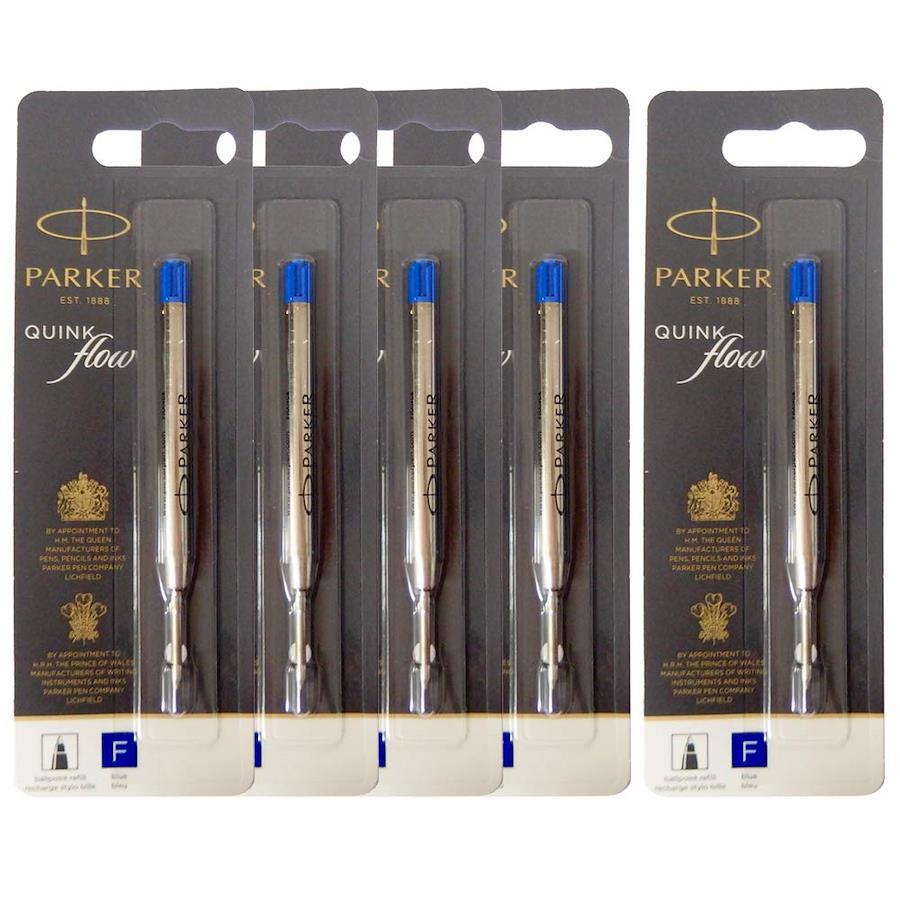 PARKER Ballpoint Pen Refills Quink Flow Blue F Fine 0.8mm Set of 5 1950368 S0909420
