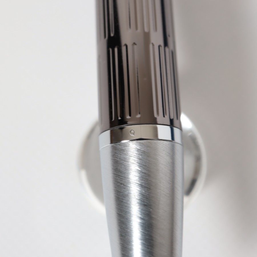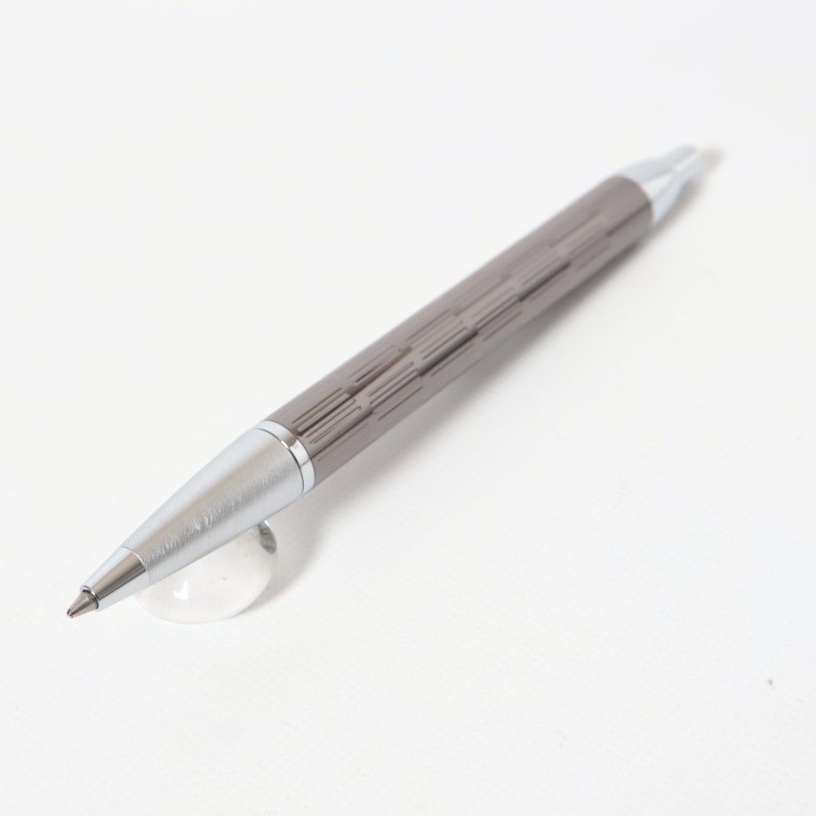 英国王室御用達ブランド、パーカーの「IM プレミアム ガンメタルチーゼルCT」です。精緻な格子状の彫刻が施されたボディは、洗練された都会的な印象を与えます。筆記確認済みで、すぐにご使用いただけます。