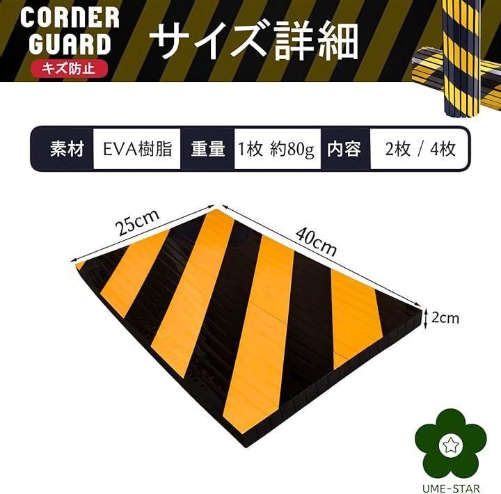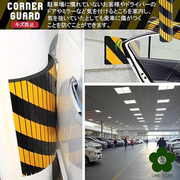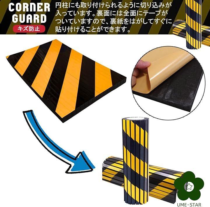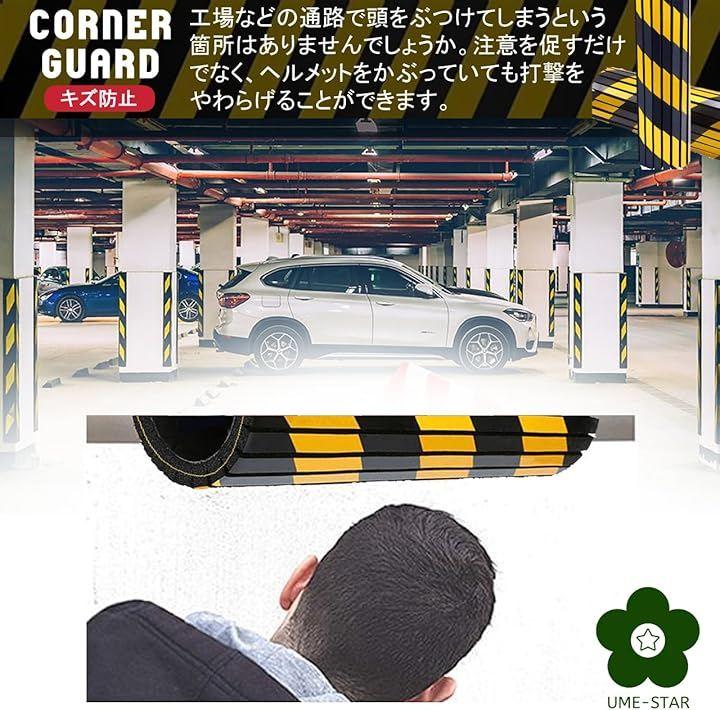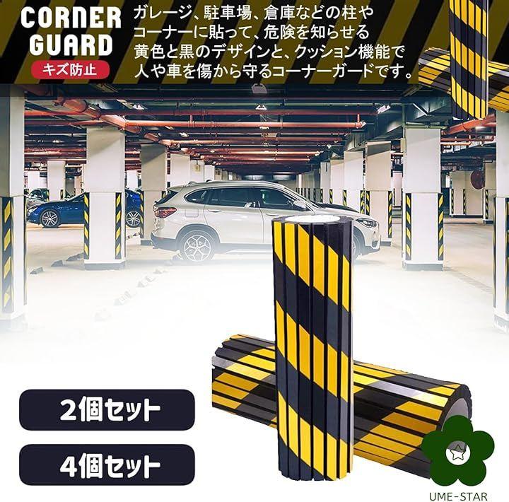 ガレージ、駐車場、倉庫などの柱やコーナーに貼って、危険を知らせる黄色と黒のデザインと、クッション機能で人や車を傷から守るコーナーガードです。