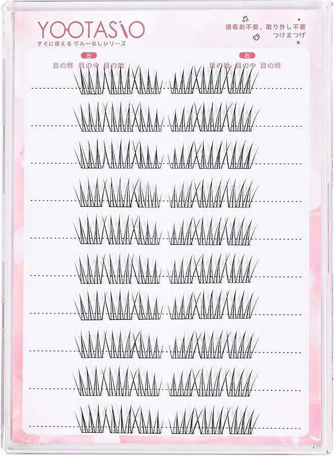 「柔軟な透明軸つけまつげ束感」YOOTASIOこのつけまつげは、アイドルグループのステージメイクからインスパイアされ、繊細な繊維とボリューム感で自然な束感を実現します。