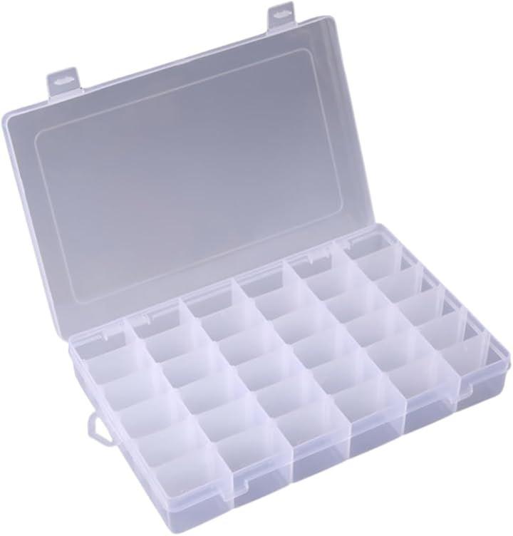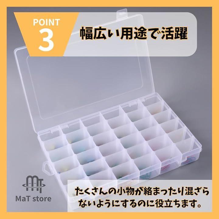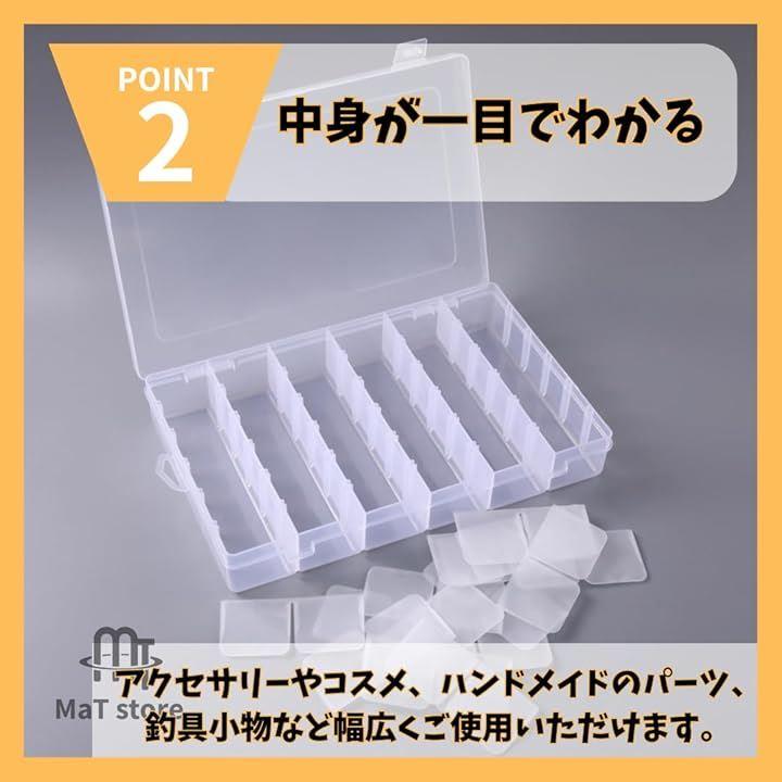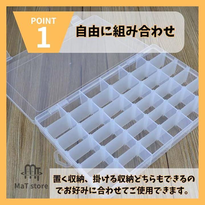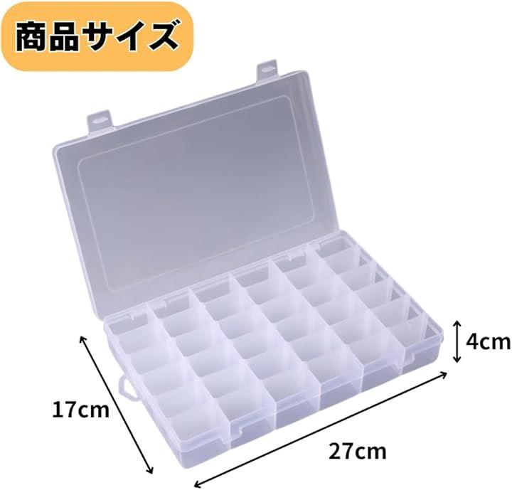 「商品詳細」サイズ:27cmx17cmx4cm、各収納部4.3cmx2.2cmx4cm、重量:250g、素材:プラスチック、色:クリア、パッケージ内容:本体x1個