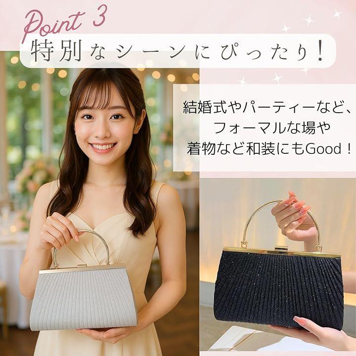 洗練されたプリーツデザインに繊細なラメをあしらった、エレガントなパーティーバッグです。