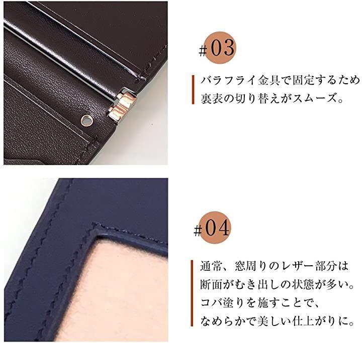 ・「素材」PUレザー「カラー」ブラック、ブラウン、ネイビー、レッド「サイズ」10.9cmx7.6cm 厚み0.6cm 展開時 21.8cm「重量」42g 高級化粧箱入り