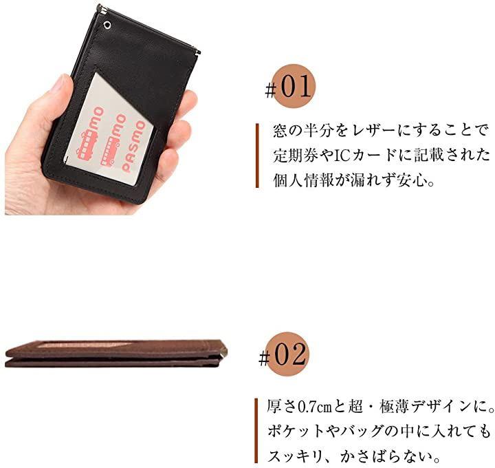 ・ビニールの窓を半分隠すことでクレジットカード一体型や定期券に記載の名前やカード番号を盗み取られる心配もありません。
