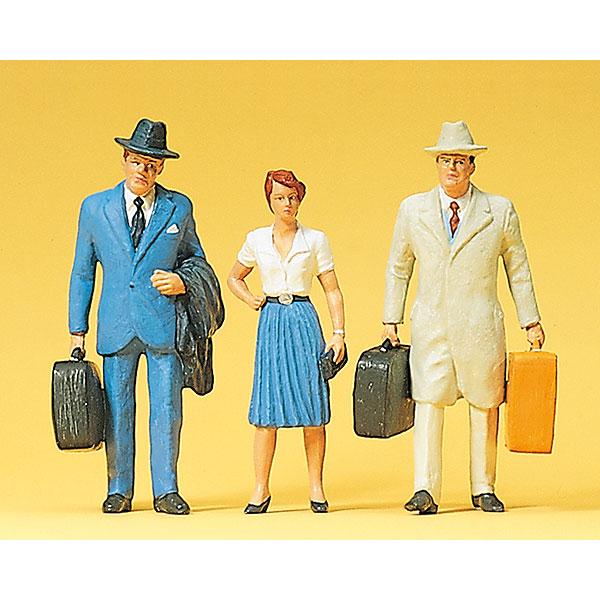 荷物を抱えた男性2体、女性1体の乗客の人形です。