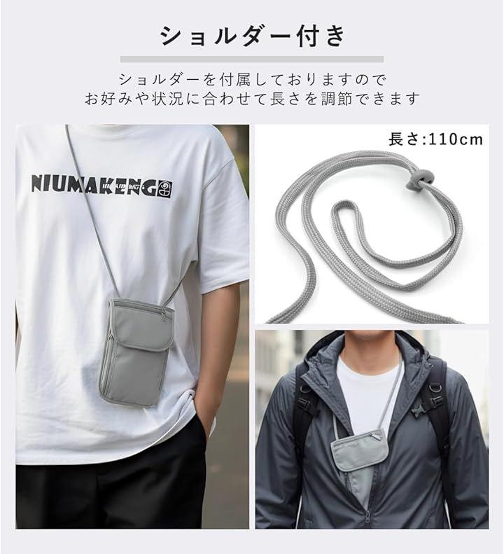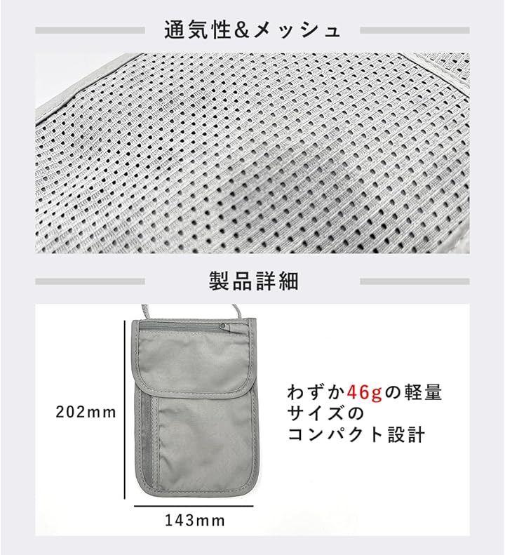 「長時間使用できる」約46gと軽量のためスマホやパスポートを入れても重さが気にならず、軽量のストラップにより長時間下げていても首が疲れにくい。