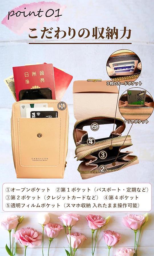 パスポートやスマートフォンを入れられるだけでなく、お財布機能もあり、ポシェットひとつでお出かけ可能です。