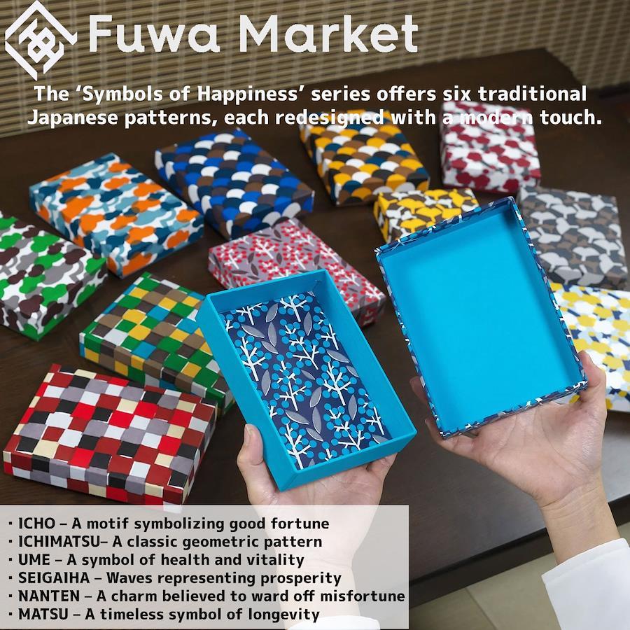 ✔ こだわりの職人技:京都の貼り箱専門工場で一点ずつ丁寧に仕上げ✔ モダンな伝統文様:6種類の文様×2色展開で選ぶ楽しさ✔ 実用性抜群:アクセサリーケース・お道具箱・小物入れとして活躍✔ 上質な贈り物にも:特別な想いを伝える「幸せの文様」「幸せの文様」シリーズは、日本の伝統文様が持つ「幸せを願う意味」に着目し、テキスタイルデザイナーとともに生み出したFuwa Marketオリジナルデザインです。