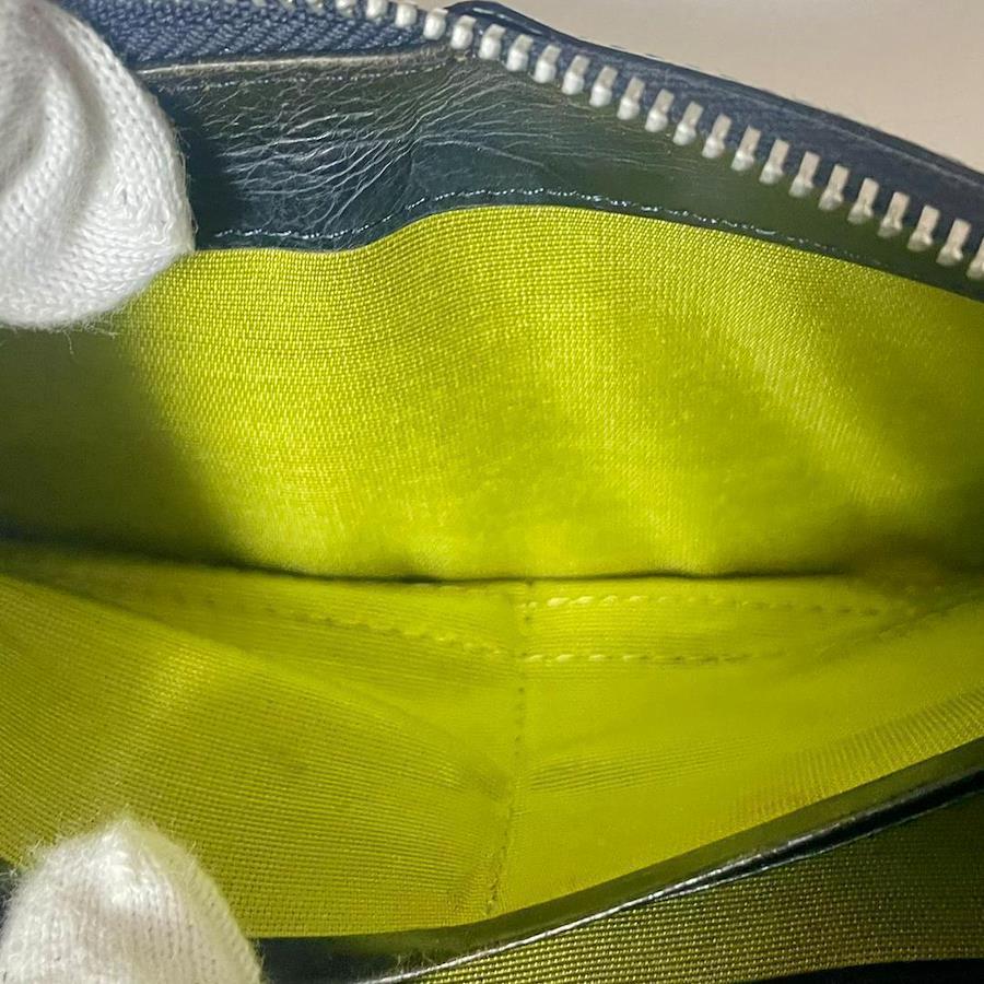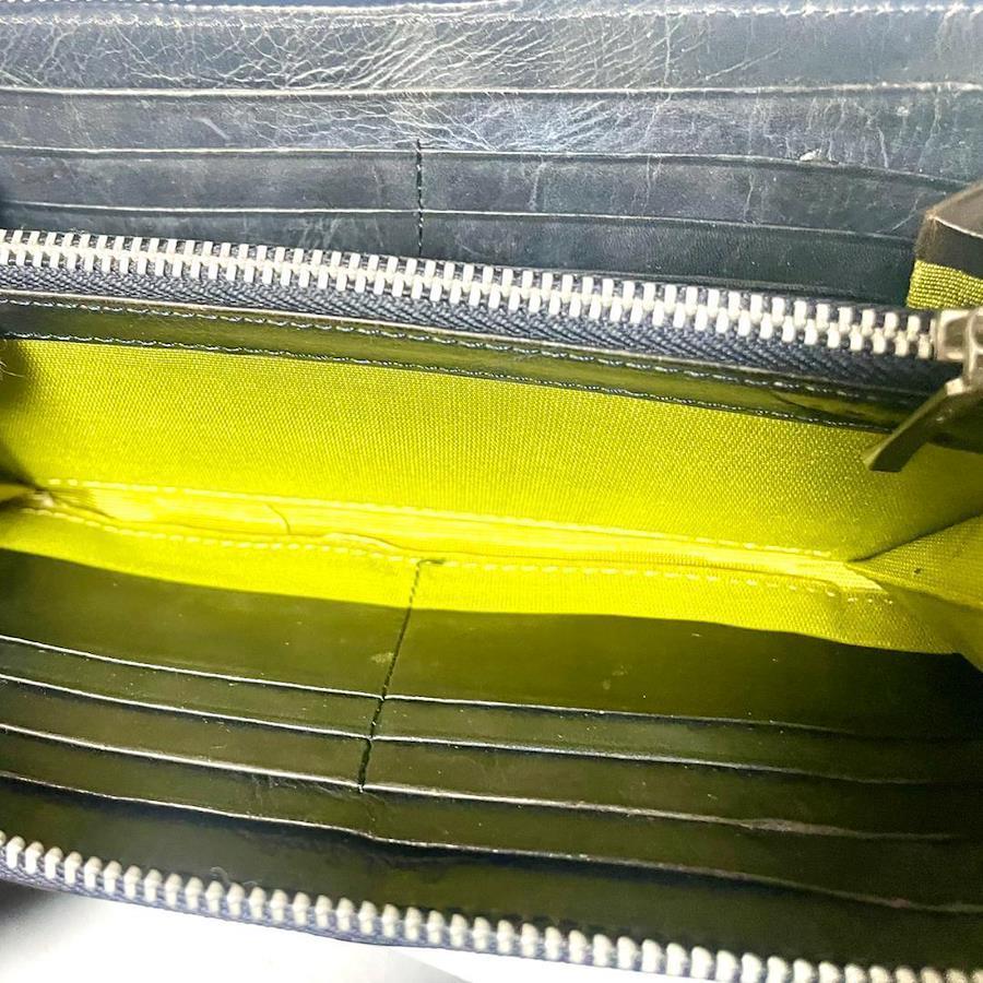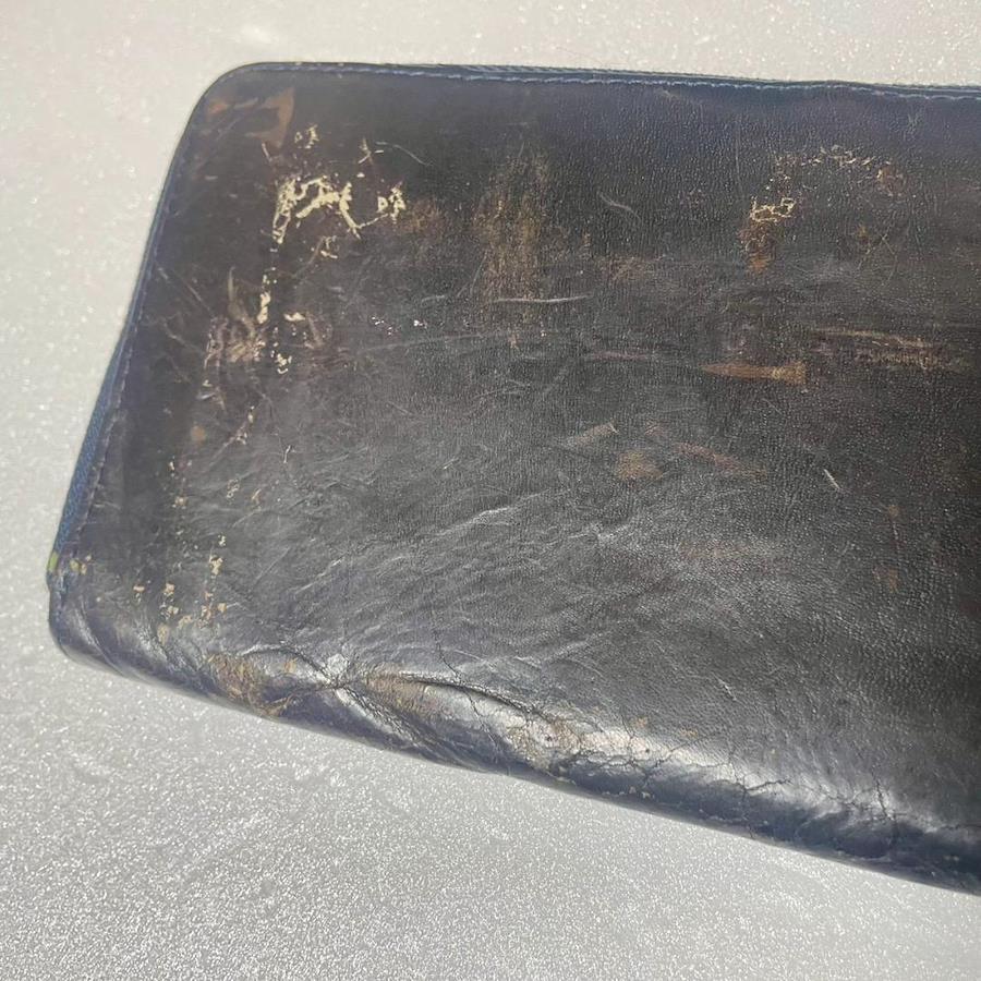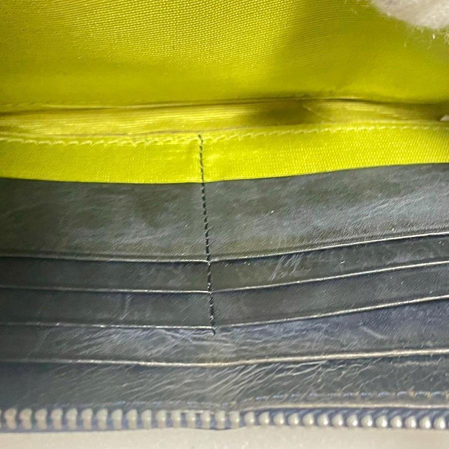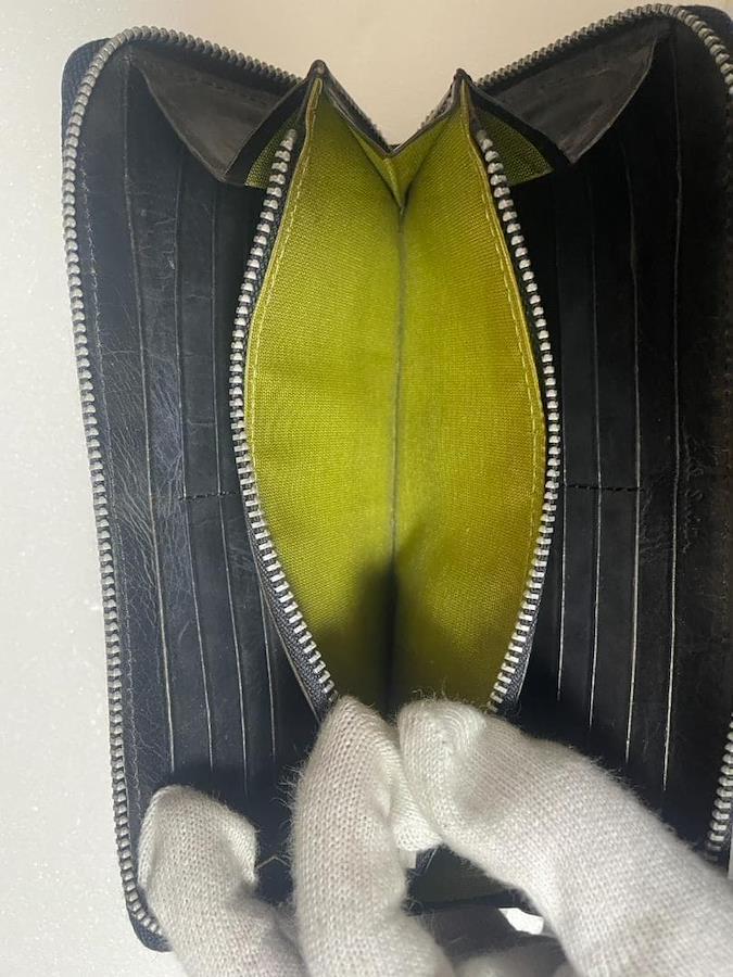 ☆こちらの商品はUSED品ですので新品や未使用品をお求めの方はご遠慮ください。ダークブラウンのレザー製長財布、内側はグリーン。