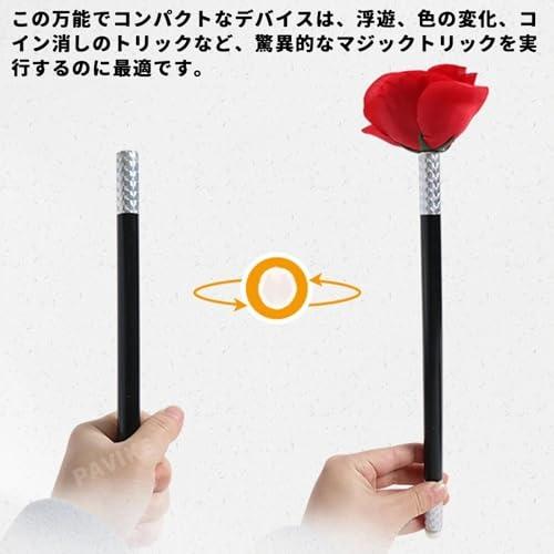 【商品仕様】ステッキの長さはやく30cmくらいで、幅は1.5cmです。伸縮性のあるロープによりマジックの効果を達します。 【使い簡単】お花を手で包み、手を離すだけで瞬時に華やかなバラが咲きます。 【注目を集める】ステージパフォーマンスでもクローズアップマジックでも、このマジック効果は瞬時に観客の注目を集め、驚かせることができます。 【幅広い使用範囲】使いが簡単で、初心者に適しています。家族の集まり、学校の公演、会社の年次総会などで使用して、楽しみを作り出すことができます。 【注意事項】花は手の中に隠す必要があり、手の小さな子供には適していません。シルクスカーフと併用するとより良い効果が得られます。